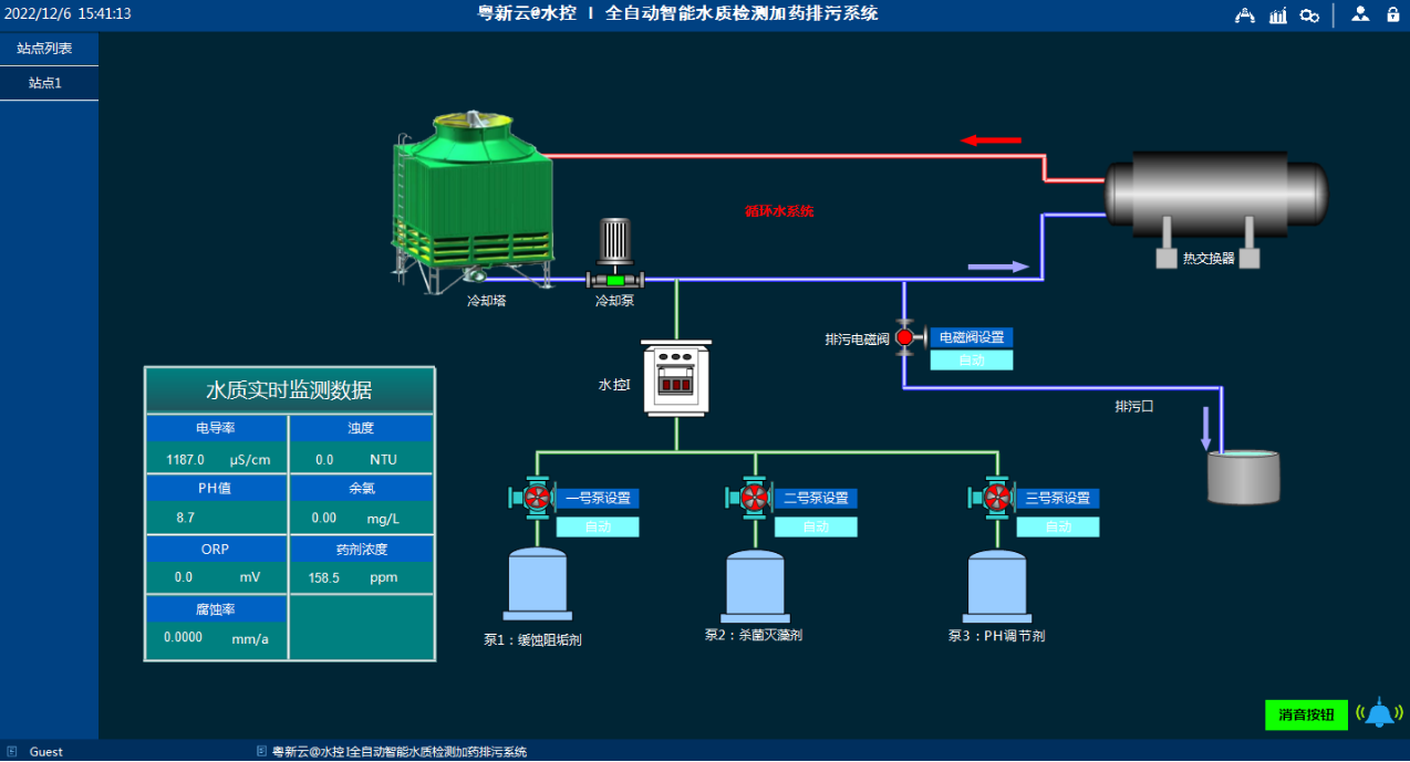 我司經(jīng)過幾年的研發(fā)后,推出了屬于我們自己的粵新云@水控Ⅰ智能終端設(shè)備,實現(xiàn)了對循環(huán)冷卻水的各項指標(biāo)的在線檢測(pH、電導(dǎo)率、藥劑濃度、余氯、ORP、濁度、腐蝕率等)以及遠程查看和遠程控制。
